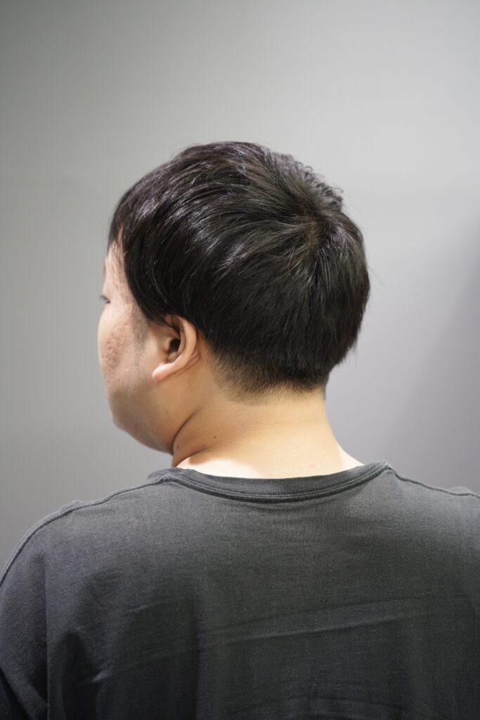 襟足とサイドのツーブロックの中にバリカンを使用したメンズヘア