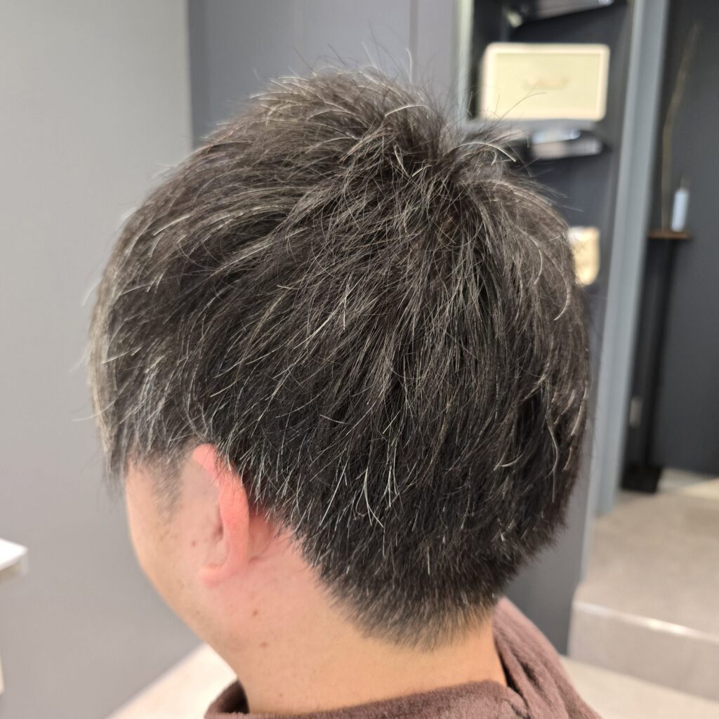 今回は普段ワックスを使用しないでも良さそうな具合を狙って、パーマで柔らかい質感の仕上がりを目指しました。